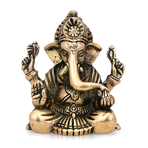 CraftVatika Ganesh Statue Golden Finished Ganesha Brass Sculpture Success Lord Ganpati Idol Hindu God Religious Figurine