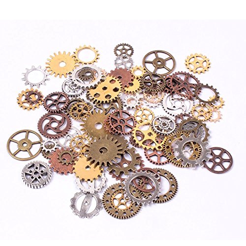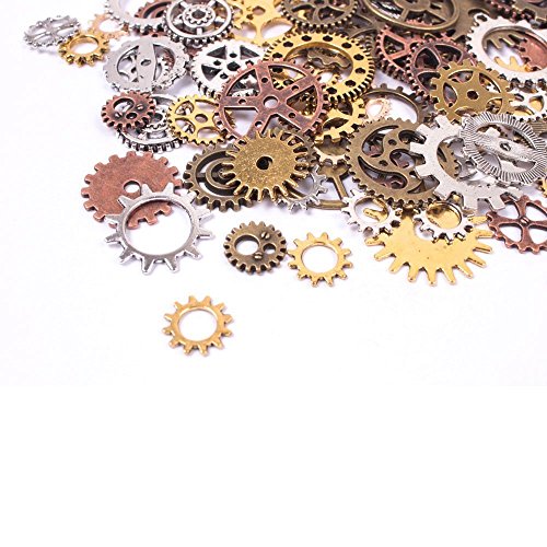 Bestsupplier INC 200 Gram (Approx 150pcs) Assorted Antique Steampunk Gears Charms Pendant Clock Watch Wheel Gear for Crafting, Jewelry Making Accessory (Random Color)