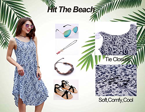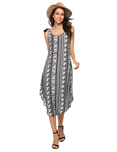 Design - V neck,sleeveless,bohemian print,tie closure,asymmetrical shape,loose fit,mixi above ankle length,casual dress
