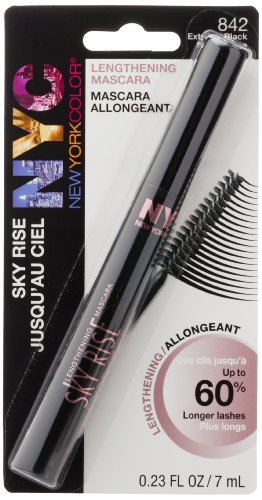 -. Binding : Health and Beauty -. Brand : N.Y.C. -. EAN : 0741655549932 -. Feature : It extends your lashes up to 60%, lifting and stretching them sky-high for an endless eye look. / It won't impact on your spending money either. / Instant lifting and stretching effect / Duo Play Complex with Panthenol and vitamin E softens and strengthens lashes to add extra comfort / Slim Precise Brush lifts and stretches lashes by 70% -. Label : NYC -. Manufacturer : NYC -. MPN : NY842B -. PartNumber : NY842B -. ProductGroup : Health and Beauty -. ProductTypeName : HEALTH_PERSONAL_CARE -. Publisher : NYC -. SKU : MF215407-2 -. Studio : NYC -. Title : NYC Sky Rise Lengthening Mascara Extreme Black (2-pack) -. UPC : 741655549932