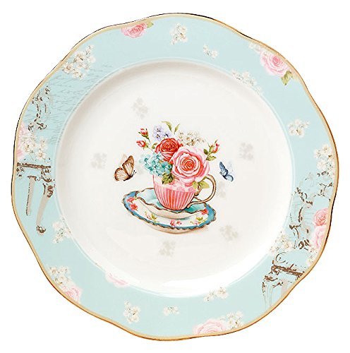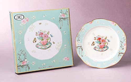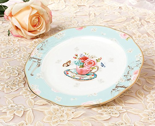Jusalpha Vintage Blue Fine China Dinner Plate-Fruit Plate-Dessert Plate-8 Inches (FL QD8IN-Plate)