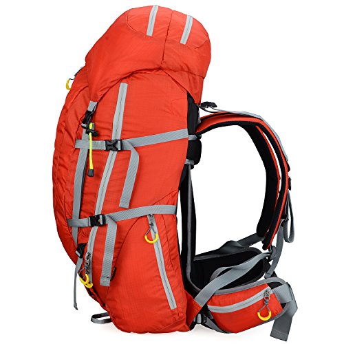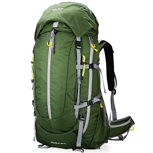 - Feature : Rugged internal frame backpack with capacity of 65L large enough for 2-5 day trips / Powerful suspension system, breathable perspiration, relieve burdened, A bracket in suspension system, and can be remove according to your preference, add more 5l if remove,see pictures / Powerful Bear Breathable System, the heat could quickly spread out, avoiding the embarrassment of sweat, also it's more comfortable for your back / capacity 65L, material: waterproof&lightweight nylon Size: 30"x15.75"x7.8"