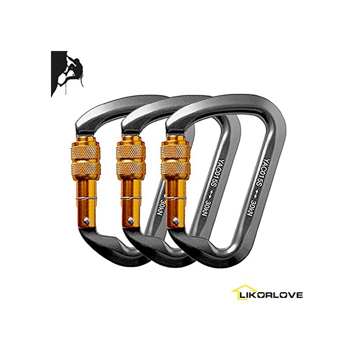 Likorlove 클라이밍용 카라비너 D형 추진기(screw) 록식 러긴카라비나 등산 캠프 rigging 아웃도어 용품 그레이