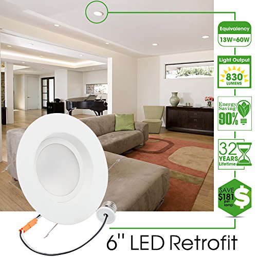 16Watt 5/6-inch ENERGY STAR UL-listed Dimmable LED Downlight Retrofit Recessed Lighting Fixture - 3000K Warm White LED Ceiling Light -- 850LM, CRI 90