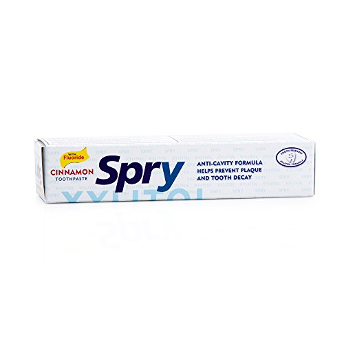-. Feature : Spry xylitol cinnamon toothpaste with fluoride / Contains over 25 percent xylitol and is rich in calcium / Helps to keep the oral cavity healthy / Formula for anti-plaque action which is gentle on enamel / Prevents bacteria adhering to teeth and gums