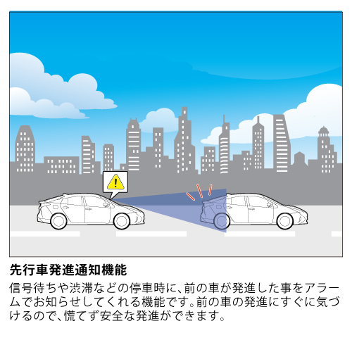 ●先行車発進通知:前の車が発進した際にアラートで知らせます