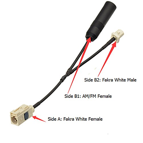 - Cable Side B1: standard RF coaxial 180 degree oriented standard AM/FM female connector