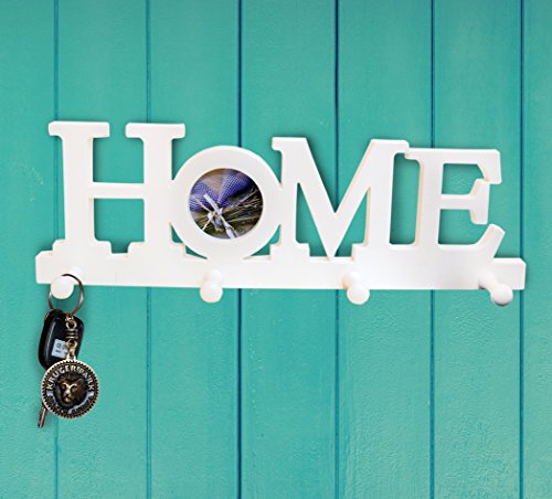 - Wall Photo Frames and Home Decoration - Adorable “HOME” key rack in classic font with a round photo window inside the "o" and 4 hooks. Photo window holds a 3" x 3" photo.