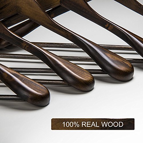 -. Feature : 100% REAL solid wooden suit hangers and skirt hangers, sturdy and durable for long time use / Non-slip design, the rounded bar end up with no creases or wrinkles / 360 degree chrome plated swivel hook, easy to access / Keep your garments in orginal shape and leave no creases or wrinkles / Elegant design for hanging kinds of heavy coats, pants, shirts and so on