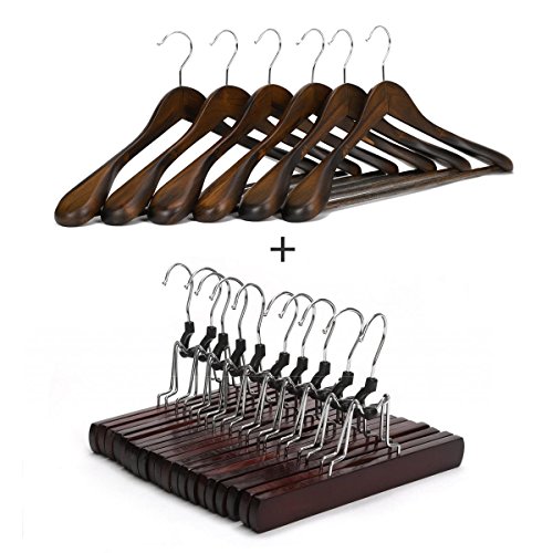 -. Title : J.S. Hanger Wooden Hangers, 10 Pack Walnut Finish Skirt Hangers and 6 Pack Walnut Finish Coat Hangers