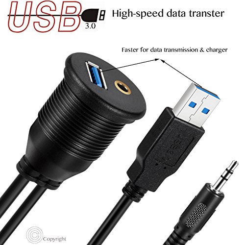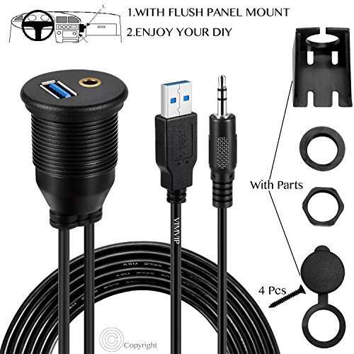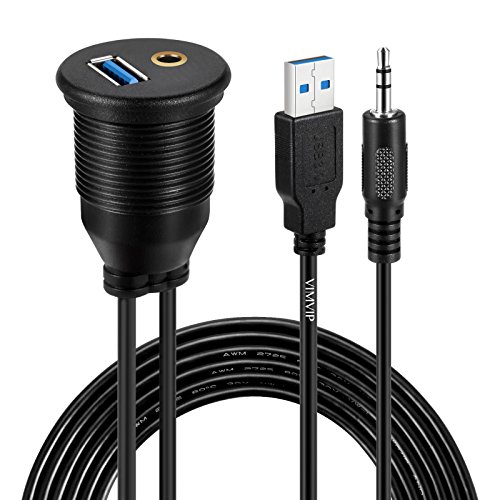 USB Mount Cable,VIMVIP USB 3.0 & 3.5mm AUX Car Flush Mount Waterproof 6.5 Feet Extension Flush, Dash, Panel Mount Cable for Car / Boat / Motorcycle
