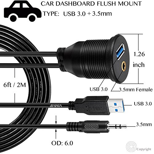- Latest Generation:This upgrade VIMVIP Car Dash Pannel Mout Cable adopted design of USB 3.0 & 3.5mm AUX which is provided with higher data transmission efficiency, and fast charging efficiency,allows audio transfer.
