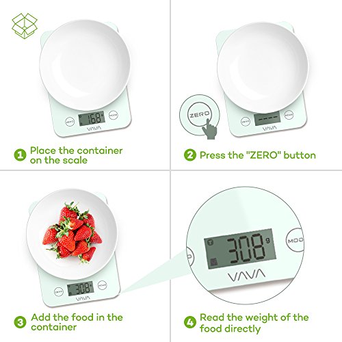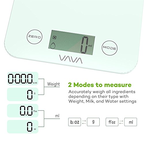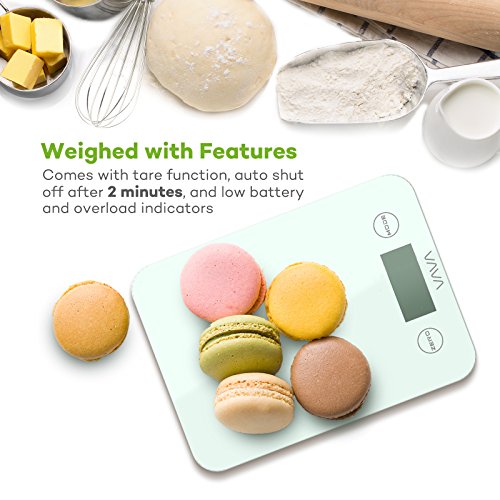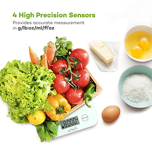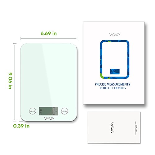 Tempered Glass Touch Sensitive Scale It is a necessity for kitchen scales to stay perfectly clean to prevent food poisoning and infections. That is why VAVA has realized a digital scale that's easy to use and clean thanks to its minimalist build that has two touch sensitive buttons below a durable glass panel. 4 High Precision Sensors Whether you need to measure a few grams of lettuce or a few chicken breasts, the VAVA Digital Food Scale will provide accurate measurements via 4 built-in sensors. Provides accurate measurements in g / lb:oz / ml / fl'oz via the integrated LCD display. The maximum weight is 8 kg / 17 lb 10.2 oz. The maximum liquid weight is 7200 ml / 246 fl'oz. FDA Certified for Safer Use If you're in the market for a kitchen scale, chances are you care to follow a healthy diet and lifestyle. In this regard, VAVA delivers a scale for cooking / baking that's certified by the FDA so you know that your greens, meats, flour, etc. will be kept pure and uncontaminated. Weighed with Features In addition to an essential tare function, 2-minute auto shut off function, and both low battery and overload indicators, the kitchen scale allows you to weigh all ingredients you may possibly need by selecting their type with Food Weight and Liquid Weight settings. What's In The Box: 1 x VAVA Digital Kitchen Scale (Model: VA-EE002) 1 x User Guide 0 |