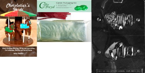 Cybrtrayd Mdk25RBk-C143 3D Santa Chocolate Mold with Chocolatier's Bundle of 25 Cello Bags, 25 Red Twist Ties and Chocolatier's Guide