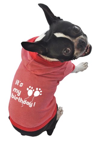 -. Title : Ruff Ruff and Meow Dog Hoodie, Its My Birthday, Red, Medium
