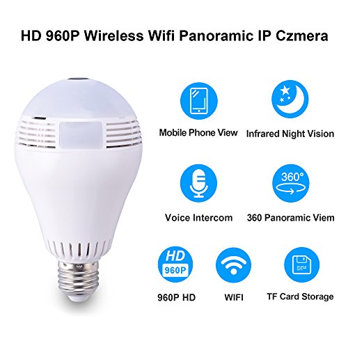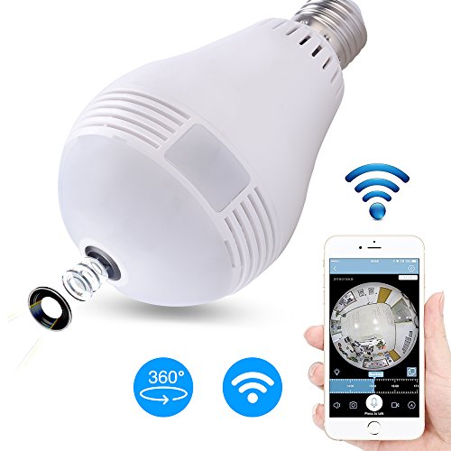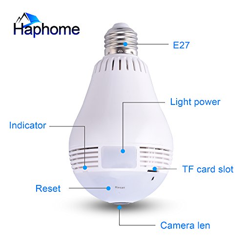 Security Camera Bulb System - Haphome (2017 New Design), Wireless Home Security IP Camera Light Bulb System, 360 Degree Fisheye Lens Wifi Video Digital Security Camera (White)