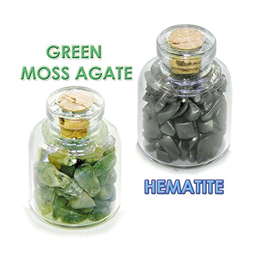 Ancient Zodiac Capricorn Yin Yang Powers Birthstones Moss Agate Hematite Magical Glass Stones Bottles Set