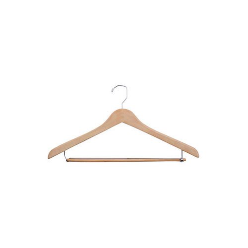 -. Feature : Wooden Concave Suit Hangers - 19" Natural Waxed Finish with Locking Skirt/Slack Bar and Chrome (Square) Hook / Concave shape to add fullness to garments on the rack / 1/2" thick