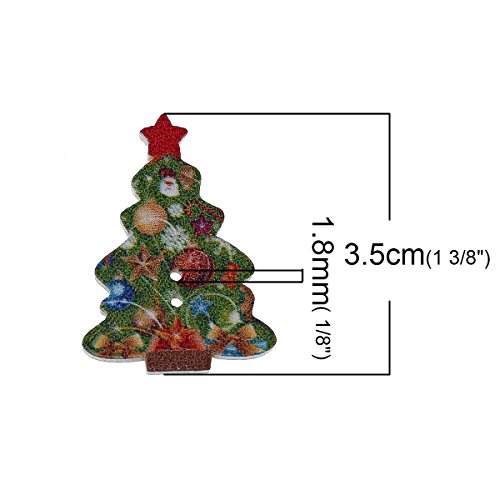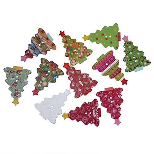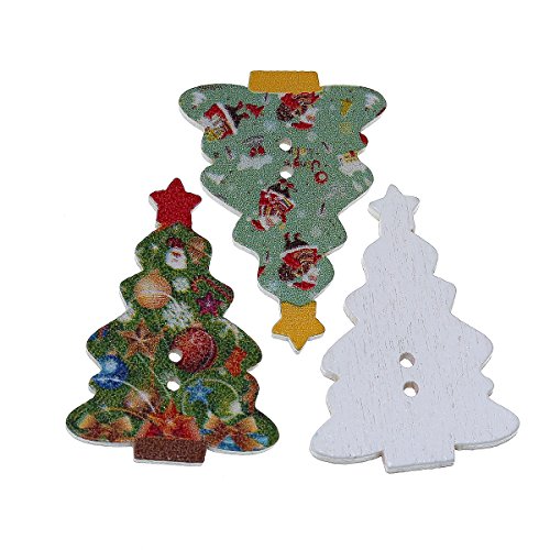 Souarts Mixed Random Christmas 2 Holes Wooden Buttons for Sewing Crafting (50pcs Tree)