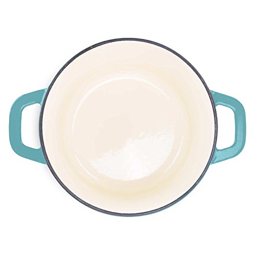 HEAVY DUTY: Constructed of heavy duty cast iron this dutch oven provides long lasting durability. Three layers of porcelain enamel are chip resistant.