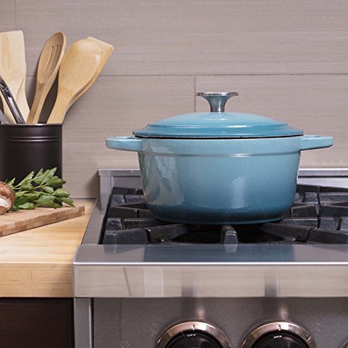 Perfect for all types of cooking, our enameled Cast Iron Dutch Oven will cook your favorite dish with ease, and can be used in the oven or over a campfire. Our enameled Cast Iron is highly efficient at retaining and distributing heat. This ensures thorough, even cooking throughout your entire dish which is sure to please your family or party guests.