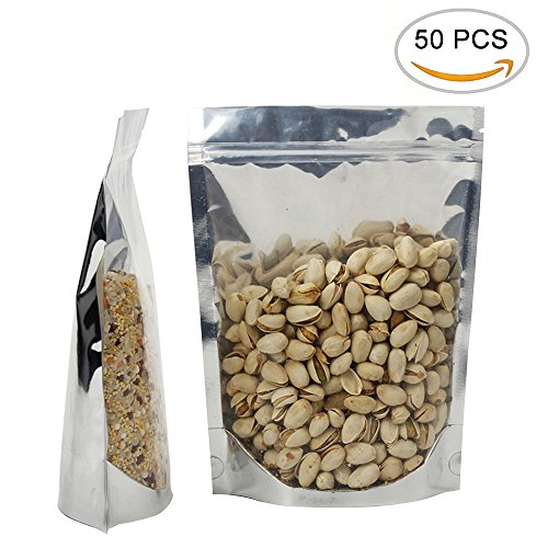Foil Standup Ziplock Plastic Pouch Airtight Seal Bags Holder for Food Package, Tea Package, Clear-Silver Colors, 6.69"x9.06", Pack of 50 by ZXSWEET