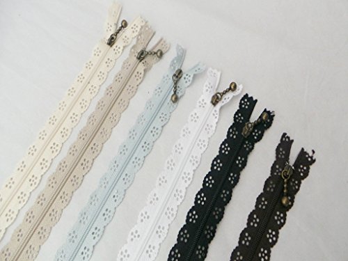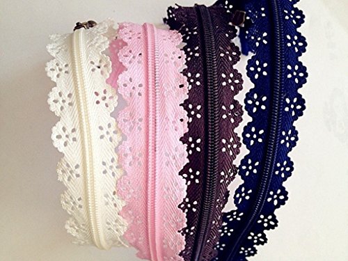 Famixyal High Quality Novelty 50 pcs 3# Full Length 24cm 9 inch DIY Nylon Coil Flower Zipper Lace Zippers for DIY Sewing Tailor Craft Bed Bag (50 pcs Lace Zipper)
