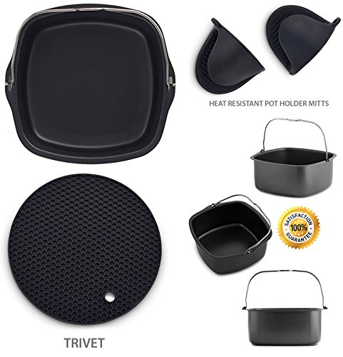 COMPLETE AIR FRYER VALUE BUNDLE:This amazing 3-in-1 air fryer accessory bundle will provide you with all the additional utility you need in your kitchen, and will transform your regular baking and cooking to a really enjoyable experience. COMPATIBLE with Philips Viva Collection Airfryer model HD9220, Philips Viva Airfryer Digital HD9230, Power Airfryer, Gowise USA, Cook's Essentials, Nu-Wave, Black and Decker, Farberware, Ivation, Emeril, Secura, Della, Chefman, Cooks Companion Avalon Bay