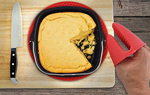 These lightweight, but heavy-duty oven mitts and pot holder trivet are the best way to protect your hands and fingers from your air fryer's and oven's high temperatures.