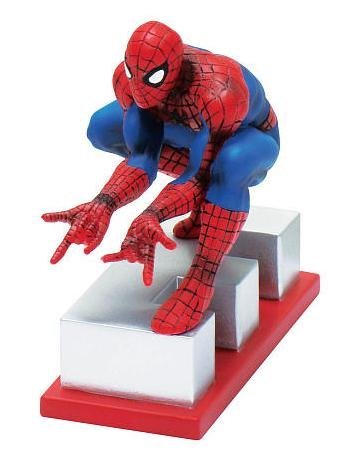 ReleaseDate : 2010-10-01 Studio : Marvel Publisher : Marvel Binding : Toy Product Description This hand-detailed Spider-Man resin statue portrays Spider-Man crouched in a dynamic pose and standing on the letter E and standing 4-inches high. As one of six pieces that can be assembled to spell out MARVEL, this set can be a wonderful addition to any Marvel collection. Use it as a paperweight or display it on a shelf when you get the rest of the figures in the set! Ages 8 and up. 0