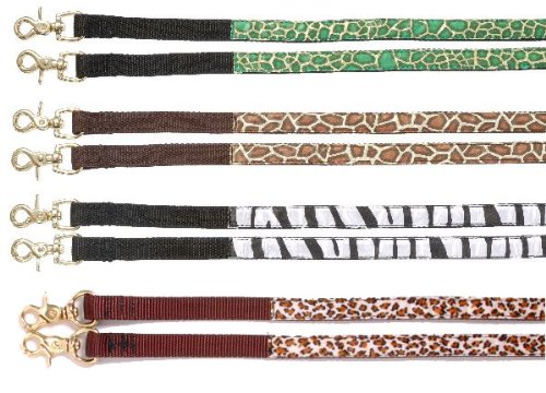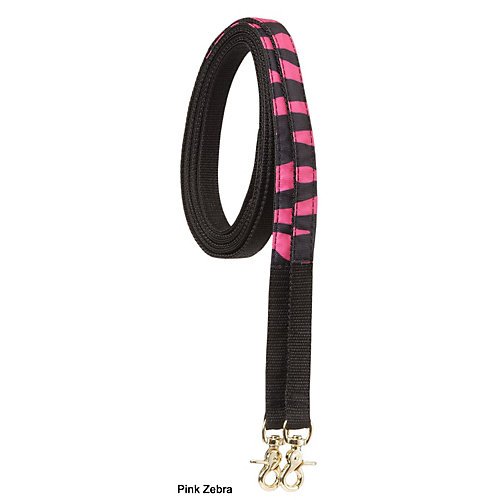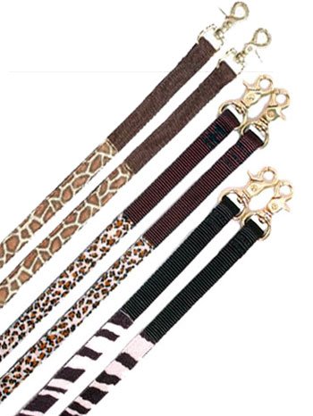 Product Description Tough-1 Wild Nylon Split Reins Premium 5/8" nylon split reins with scissor snap bit ends. Doubled and stitched for durability. Fun animal print at bit ends. Features: Scissor Snap Bit Ends Doubled and Stiched Specifications: Measurements: 84" L x 5/8" W 0
