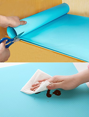 Latom Vinyl Shelf Liner Paper Rolls, Non-Adhesive&Non-Slip Cabinet Drawer Liners (12 Inch Wide x 5 Feet Long x 2 Rolls, Light Blue)