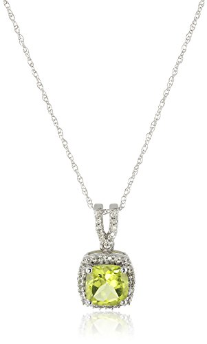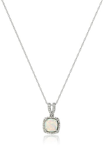 -. Title : 10k White Gold Cushion White Diamond Birthstone Pendant Necklace, 18"