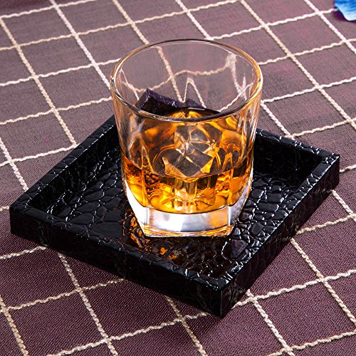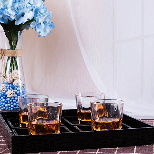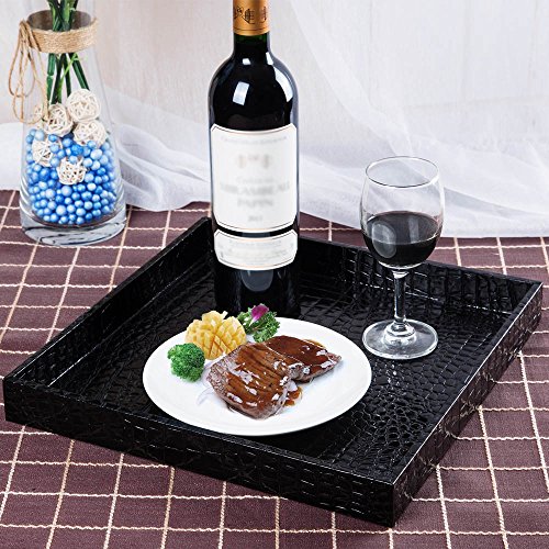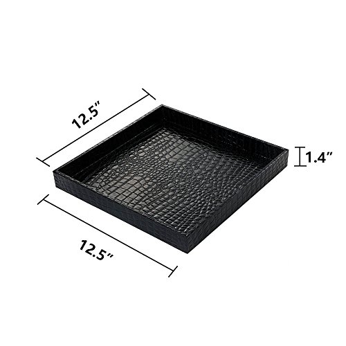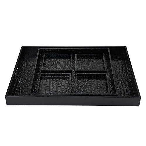 CC Wonderland Serving Tray Table with Handles, Square Alligator Faux Leather, Set of 6, 1 Large Rectangle, 1 Large Square, 4 Small Squares - Black, Ottoman