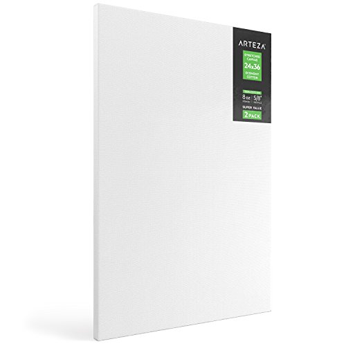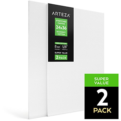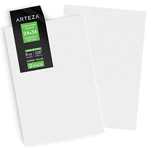 Arteza Blank Pre Stretched Canvas for Painting, 24x36", Pack of 2, Primed, 100% Cotton, For Acrylic Paint, Oil Paint, & Other Wet or Dry Art Media, For the Professional Artist, Hobby Painters, & Kids