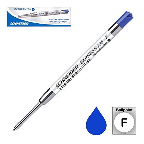 -. Binding : Office Product -. Brand : Schneider -. EAN : 4004675173539 -. Feature : Premium quality German manufacturing with wear-resistant stainless steel tip that ensures smooth and consistent delivery until the ink supply is completely used / Approximately 10,000 m of writing / Waterproof to ISO 12757-6 / Fits all Schneider "Plug & Play" ballpoints, and all ballpoint pens using the Parker-style refill / Made in Germany -. Label : Schneider -. Manufacturer : Schneider -. Model : EXPRESS 735 -. MPN : 4004675173539 -. PackageQuantity : 1 -. PartNumber : 4004675173539 -. ProductGroup : Office Product -. ProductTypeName : OFFICE_PRODUCTS -. Publisher : Schneider -. Size : 5.000 -. Studio : Schneider -. Title : Pk/10 Schneider Express 735 Ballpoint Refills, Blue F