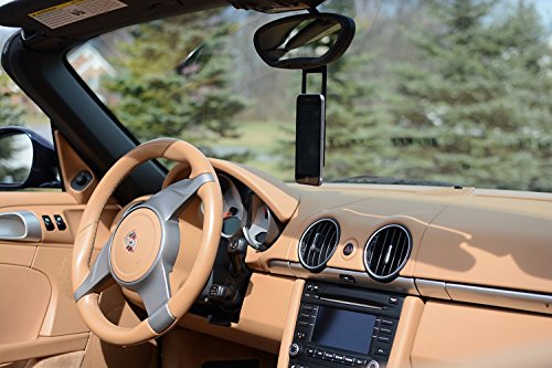 -. Feature : Puts your mobile device in the perfect viewing position, just below your mirror! / Easily and safely attach or remove your device with one hand and virtually no distraction! / No more falling suction cups, blocked vents or lost cell phones in your car! / Make hands free calls, view your notifications, control your music or use your GPS navigation apps!