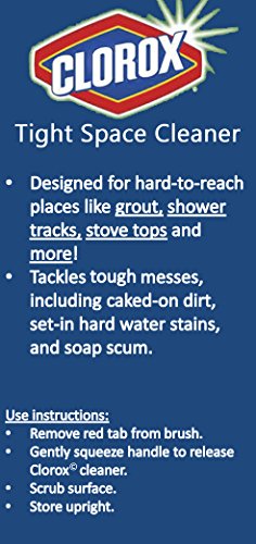 Clorox Tight Space Cleaner is an all-purpose scrubbing tool that lets you easily deep clean hard to reach places where dirt builds up. That's because Clorox Tight Space Cleaner is pre-loaded with liquid Clorox cleaners that penetrate tough messes 2x faster than a scrubby sponge or toothbrush. The brush is sized and angled perfectly for scrubbing grout, shower door tracks, stove tops, kitchen sink drains and more. Simply squeeze the handle to dispense liquid cleaner and scrub. The brush head is non-scratch and rinses clean after each use.