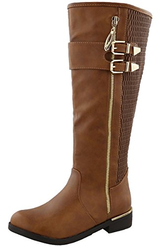 Top Moda Women's Knee High Double Buckle Riding Boot