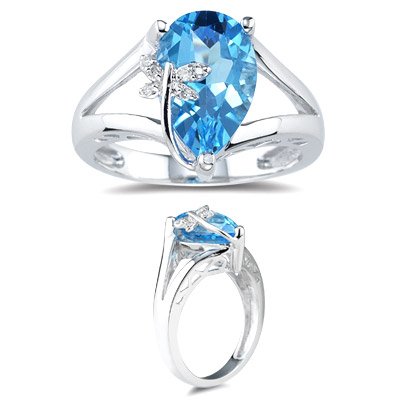 -. Title : 0.03 Cts Diamond & 2.50 Cts Swiss Blue Topaz Ring in 14K White Gold