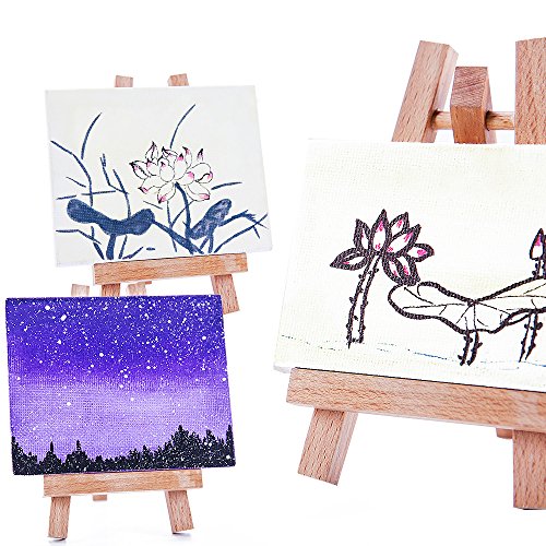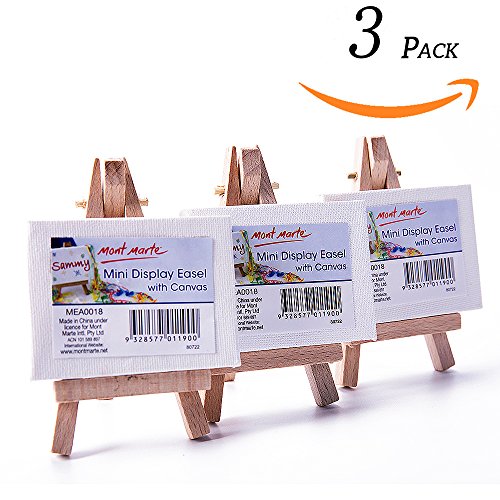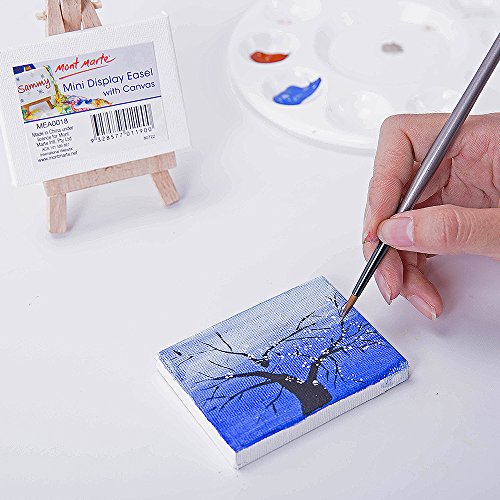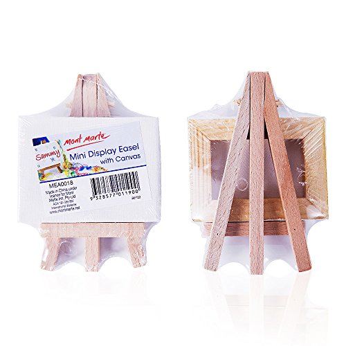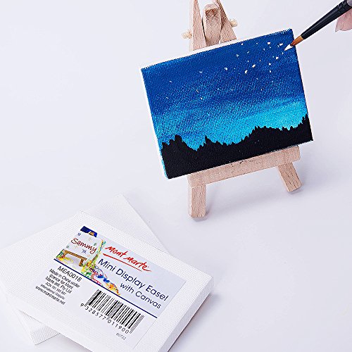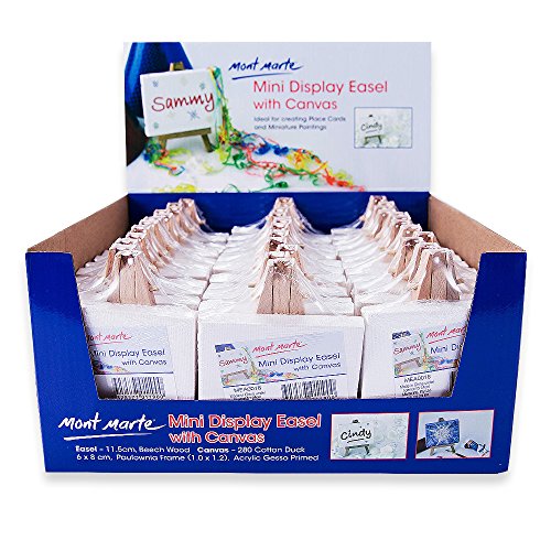 Mont Marte Beech Wood Mini Display Easel 4.5x2.6 Inches with Canvas 6x8 cm, Acrylic Gesso Primed - 36 Pack, Ideal for Home Decor & Display
