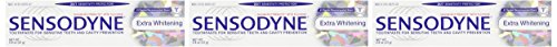 Sensodyne extra whitening toothpaste breaks up stains to get your teeth whiter. Like other sensodyne toothpaste products, when used every day, sensodyne extra whitening toothpaste relieves sensitive teeth by building a protective barrier that blocks the pain caused by hot, cold, sweet and other contact triggers and it keeps it from coming back. It also leaves a fresh, clean feeling in your mouth.