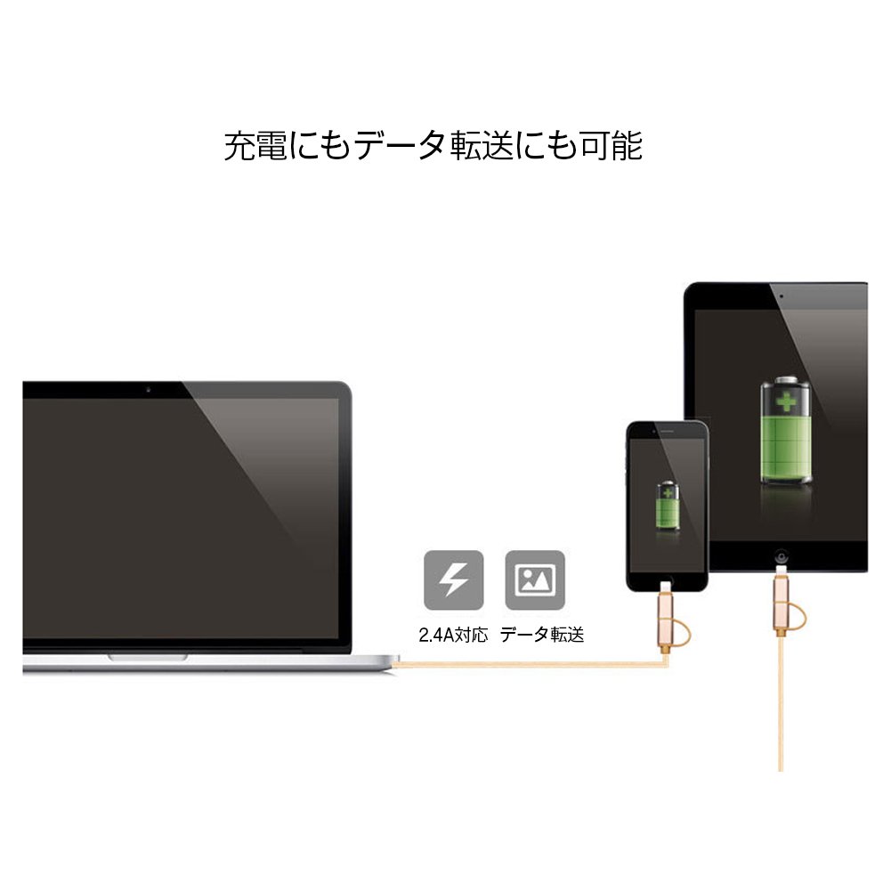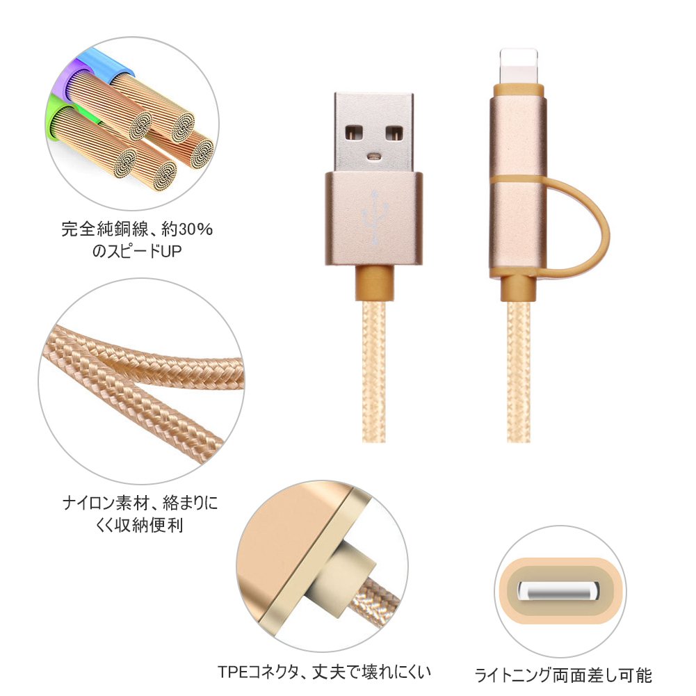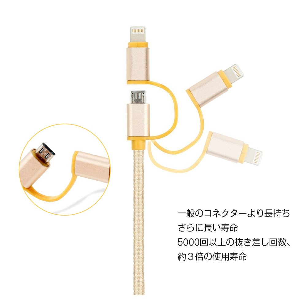 It has two connectors, lightning connector and Micro USB connector, and can charge iPhone and other smartphones without preparing many cables.