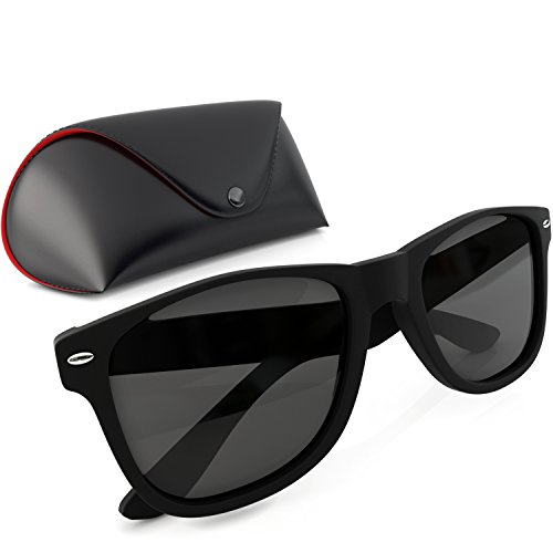 -. Feature : Wayfarer Style Polarized Sunglasses with full UV 400 protection (including UVA and UVB) made from custom impact resistant material for maximum durability and frame strength. / Includes a FREE complimentary carrying case with a durable drop-resistant exterior shell coated with interior protective lining. Secured with snap-lock closure to prevent accidental opening during transit. Easy to store, transport and no need to worry about scratching the lenses or finish when on-the-go. / Polarized lenses enable full eye protection against potentially harmful UVA and UVB spectrum rays. 'No squint' bright spectrum filtering technology provides the best image without the need to squint in direct sunlight for improved outdoor visibility. / Classic stylish soft touch matte black color, 53mm lense width. Unisex adult style for men and women with all face types (small, large, round, etc.). Italian design. / 60 Day Warranty Included - If for any reason at all you are unsatisfied with your purchase of Fashion+ Polarized Wayfarer Sunglasses with UV Protection and Carrying Case, you may return it for a full refund. Included warranty protects purchaser from defects, breakage or dissatisfaction.