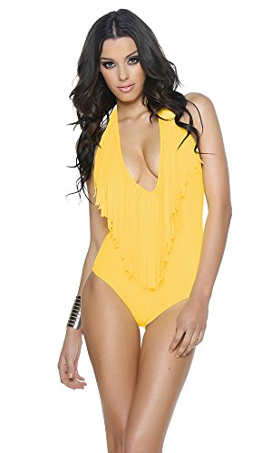 Product DescriptionHalter monokini features fringe neckline and adjustable neck and back ties0