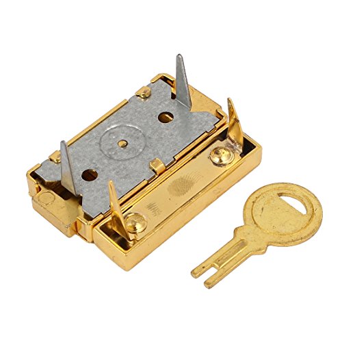 uxcell Toolbox Jewelry Box 43mmx29mm Rectangle Shape Latch Hasp Lock Gold Tone w Key