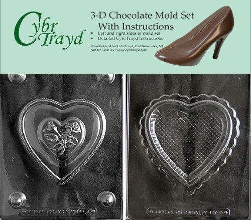 Cybrtrayd V149AB Chocolate Candy Mold, Includes 3D Chocolate Molds Instructions and 2-Mold Kit, Pretty Heart Pour Box