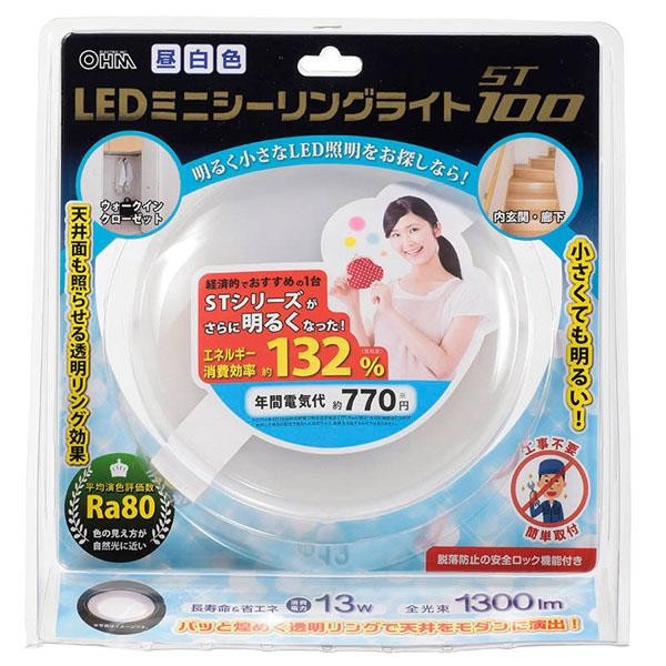 工事不要の簡単取付☆小さくても明るいLEDミニシーリングライトです。ウォークインクローゼットや内玄関・廊下などにピッタリ☆天井面も照らせる透明リング効果で天井をモダンに演出します。 製造国:中国 ※サプライヤー直送品 ご注文後2~3営業日後の出荷となります【商品名】オーム電機 OHM LEDミニシーリングライト ST100 1300lm 昼白色 LE-Y13NE-ST2