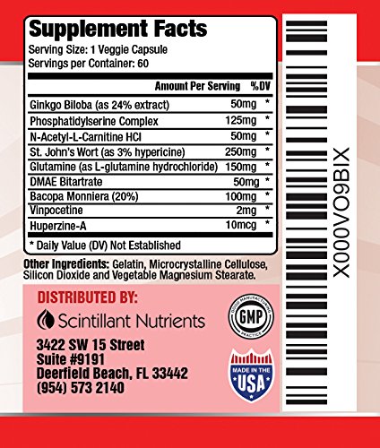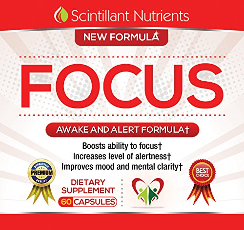 -. Binding : Health and Beauty -. Brand : Scintillant Nutrients -. EAN : 0646437160940 -. Feature : BOOST FOCUS ENERGY & CLARITY: Wake and be alert ready for the day ahead. Improve your concentration for those important tasks. Remove the fog from the night before or the jet lag that you need to get over. / BRAIN JUICE: Improve your Brain Juice with this powerful formula. Just think what you can do when you can think clearly. / IMPROVED COGNITIVE FUNCTION: Improved brain function with this powerful natural nootropic formula. / ALL NATURAL NON HABIT FORMING INGREDIENTS: Ginkgo Biloba, St Johns Wort, L-Glutamine and other powerful natural ingredients specially formulated to enhance you cognitive function. / MADE IN USA TO GUARANTEE QUALITY: Made in FDA registered facility. There is a 60 day manufacturers guarantee so why not try today. -. IsAdultProduct : 0 -. Label : Scintillant Nutrients -. Manufacturer : Scintillant Nutrients -. PackageQuantity : 1 -. ProductGroup : Health and Beauty -. ProductTypeName : HEALTH_PERSONAL_CARE -. Publisher : Scintillant Nutrients -. Studio : Scintillant Nutrients -. Title : FOCUS by Scintillant Nutrients Powerful Nootropic Supplement for the Brain to Enhance Concentration Memory Brainpower and Mental Alertness - BUY 4 SAVE 25% - BUY 3 SAVE 20% - BUY 2 SAVE 10% -. UPC : 646437160940