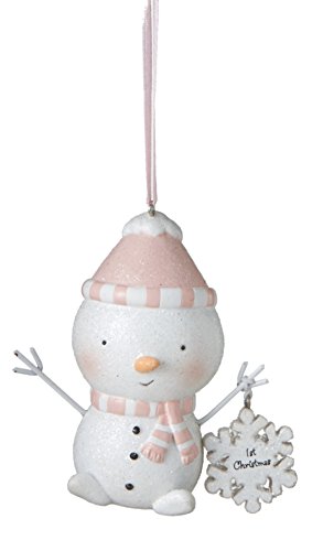 Pink Baby Girl First Christmas Baby Snowman Resin Christmas Ornament - Size 3.5 in.